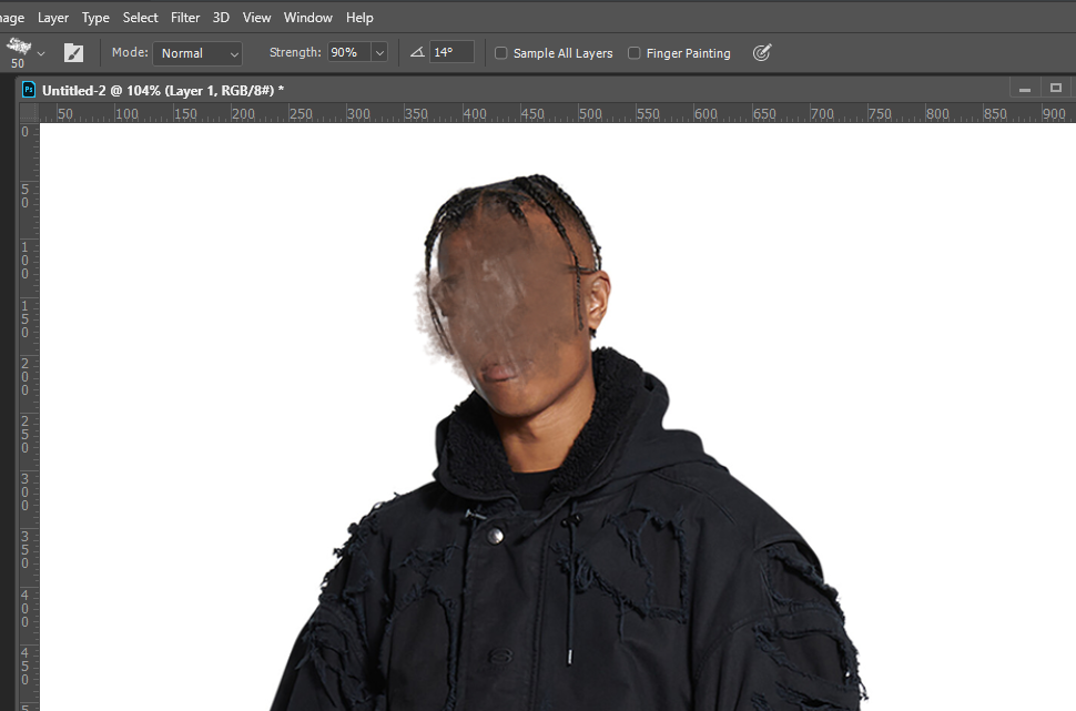 바로 해보자. 아래 모델 처럼 간지나는 얼굴이면 모르겠지만, 얼굴을 가려야 하는 모델이 생길 수 도 있다. 이럴 때 브러시로 얼굴을 덧칠해준다. 아래는 전/ 후 이미지.