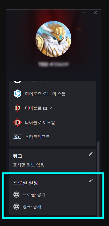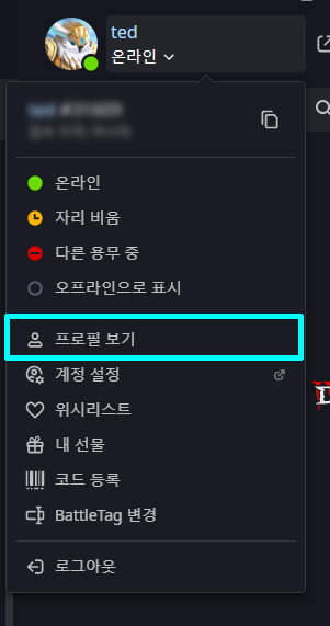1. 배틀넷 클라이언트-우측 아이디 클릭-프로필 보기 클릭