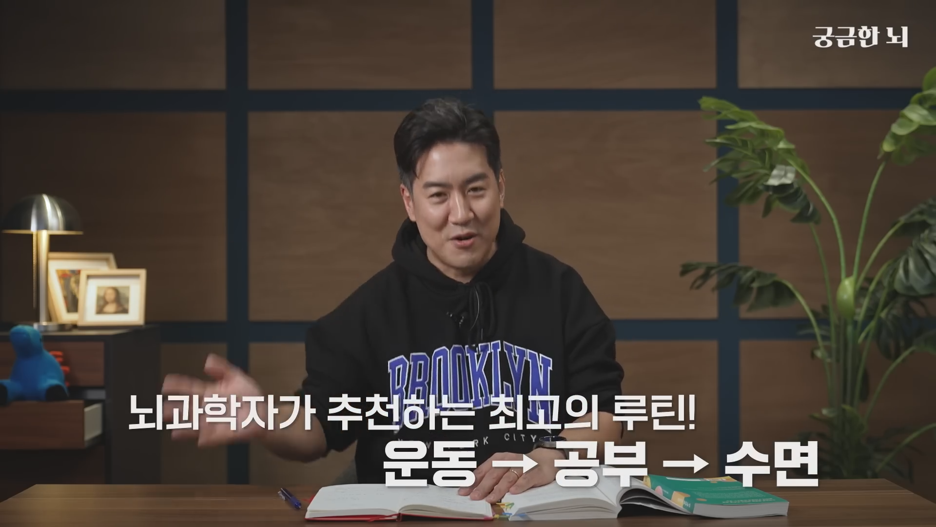학습하고 나서 바로 자잖아요 그러면은 수면 역시도 학습 강화에 엄청난 도움이 돼서 내가 뭔가를 공부한 거를 머릿속에 꼭 기억하고 싶다 운동하고 공부하고 바로 자는 거 엄청 좋은 루틴이라 할 수가 있죠. 반면에 아침에 일어나서 운동하는 거 약간 또 다른 각성 효과가 있을 것 같아요 약간의 코티지를 분비 스트레스 호르몬 분비가 되면서 몸이 깨어날 수 있도록 하루를 핏하게 시작하고 싶다 아침에 운동하는게 도움이 되는데 공부를 내가 오전에 해야 된 것들을 다 공부해야 된다 그러면은 운동 직후에 공부하는 거 아주 효과가 높을 수가 있는 거죠.