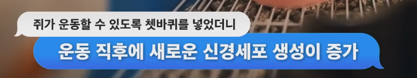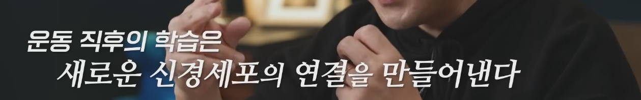운동후 새로운 신경세포가 만들어진 다음에 쓸모가 있도록 해야 되는데 그 쓸모 있는 것은 바로 학습을 하는 것이다. 그러니까 운동을 엄청 열심히 하고 나서 직후에 뭔가를 배운다 그러면 배우면서 새로 만들어진 신경세포와 연결들을 만든다. 그 운동과 학습을 병행하는게 좋고 운동 직후에 학습 효과가 올라간다.