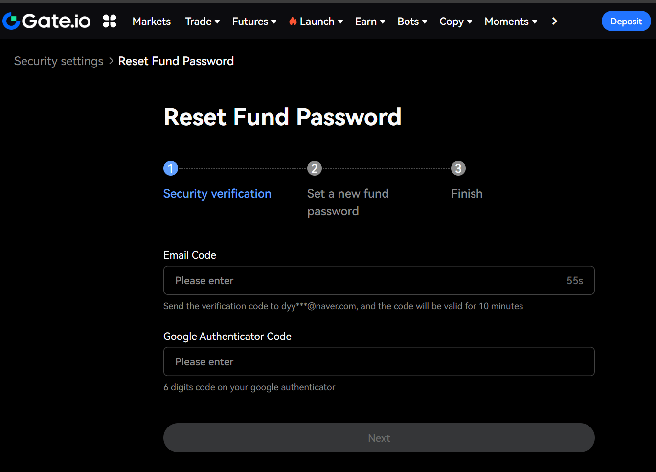 To reset it: On Web: Please follow this link https://www.gate.io/myaccount/forget_fundpass and reset your fund password. Make sure to use a network with a static IP, and reset it as soon as you receive the reset email.